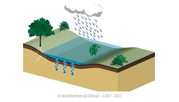 En infiltrant l’eau à la parcelle, on limite le ruissellement et les pics de débit dans les réseaux et les cours d’eau.